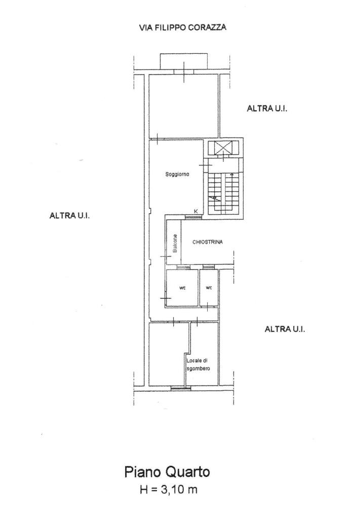 Proponiamo in locazione un'appartamento posto al 4 piano dello stabile anni 60' il prospetto e il vano sono in buone condizioni.