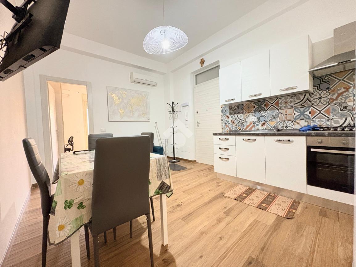 Lo stato e' da considerarsi ristrutturato con infissi in alluminio vetro-camera, impianti rifatti e porta d'ingresso blindata. E' arredato in stile moderno ed è dotato di tutti i confort di prima necessità, inoltre la lavatrice e i climatizzatori in ogni camera.