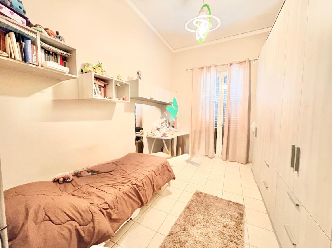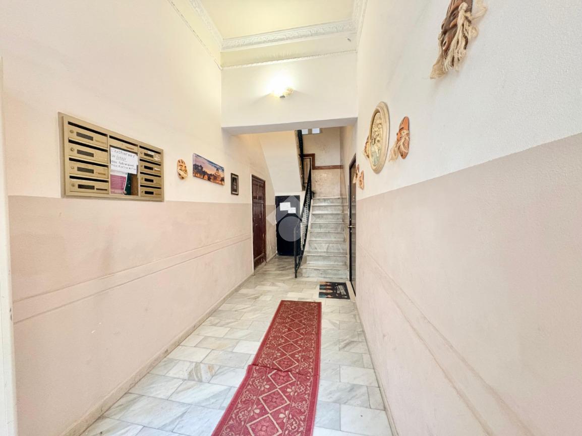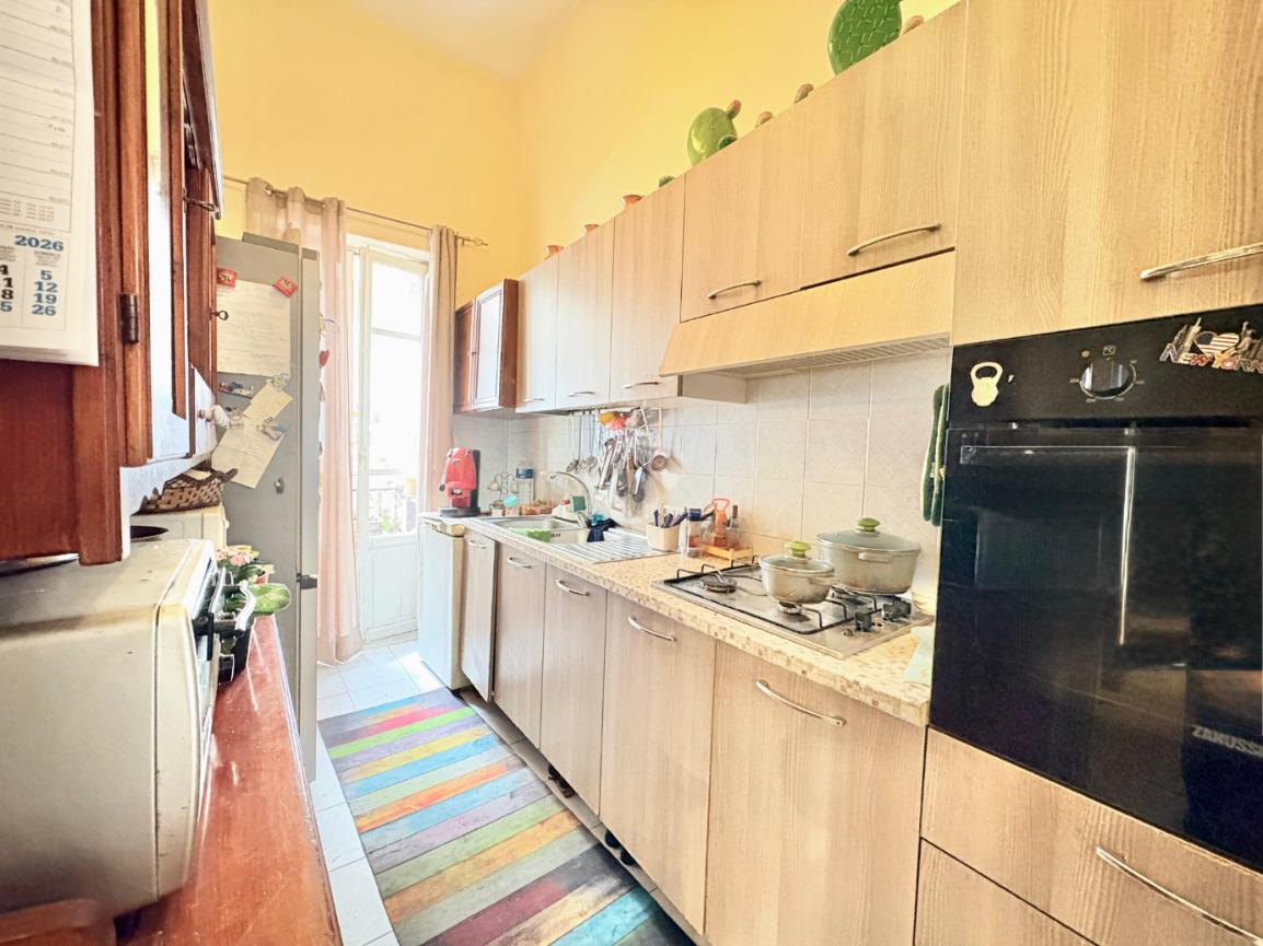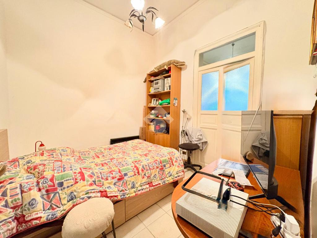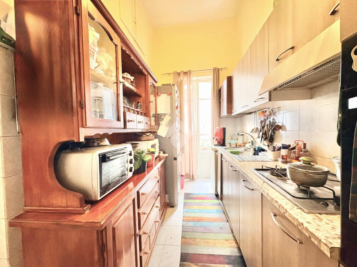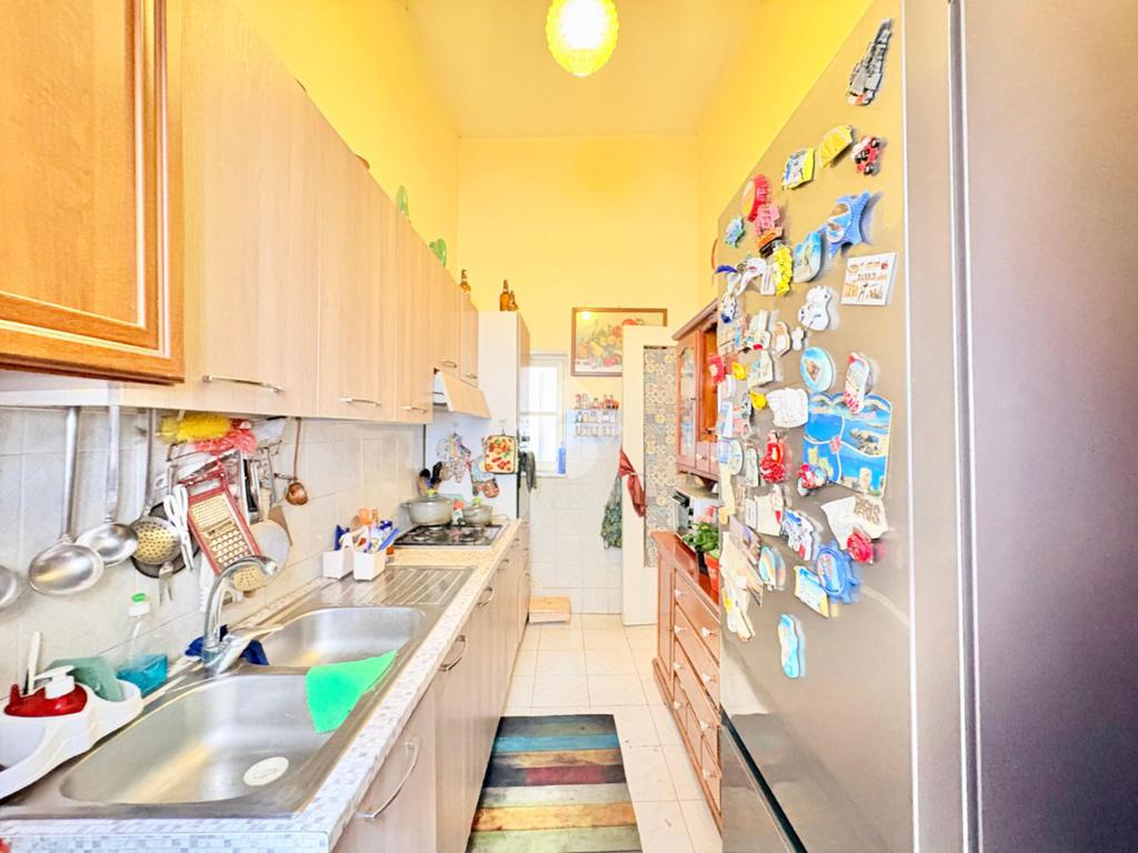 L'immobile si estende su una superfice di 90 mq ed è composto da tre locali ben distribuiti. La disposizione interna prevede l'ingresso disimpegnato, due camere da letto con balcone, una cameretta, cucina semi-abitabile,soggiorno e infine wc con ha una doppia esposizione sia sulla via pricipale che nella parte interna del palazzo.