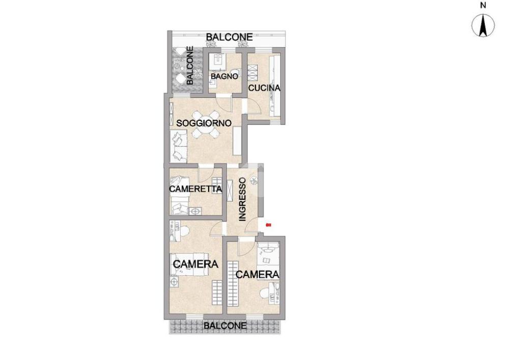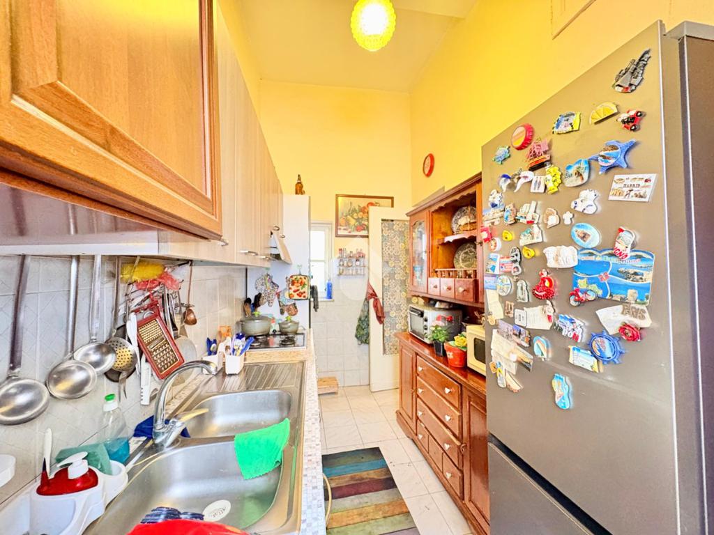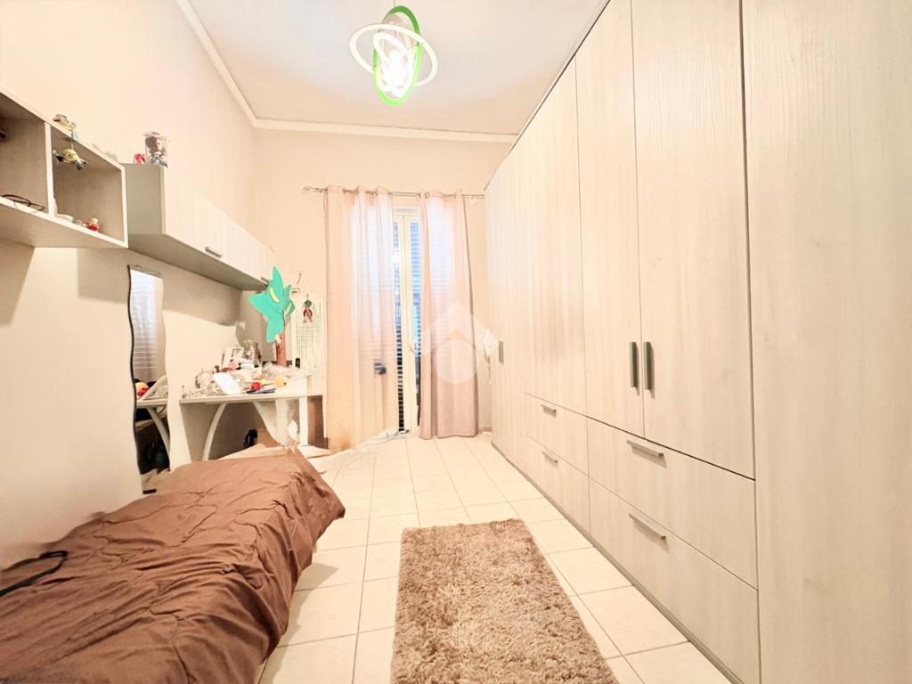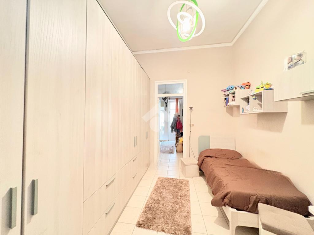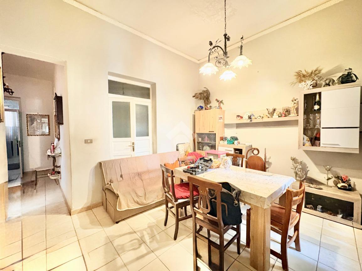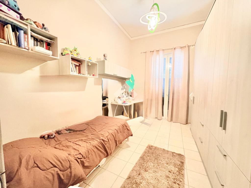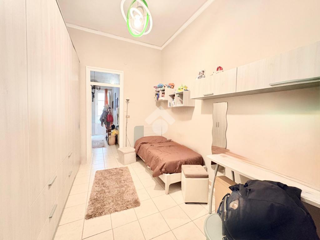 L'immobile si estende su una superfice di 90 mq ed è composto da tre locali ben distribuiti. La disposizione interna prevede l'ingresso disimpegnato, due camere da letto con balcone, una cameretta, cucina semi-abitabile,soggiorno e infine wc con ha una doppia esposizione sia sulla via pricipale che nella parte interna del palazzo.